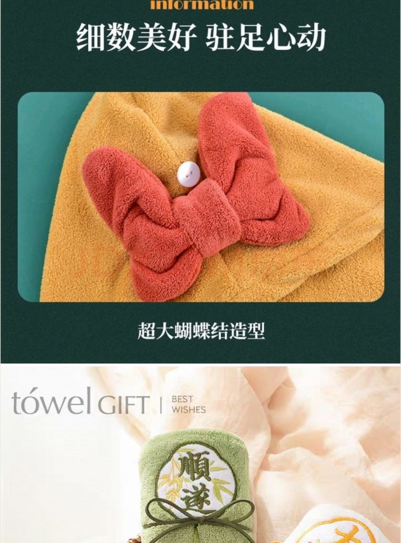 2、蝴蝶結(jié)干發(fā)帽 加厚面料設(shè)計(jì) 強(qiáng)吸水性 時(shí)尚外觀