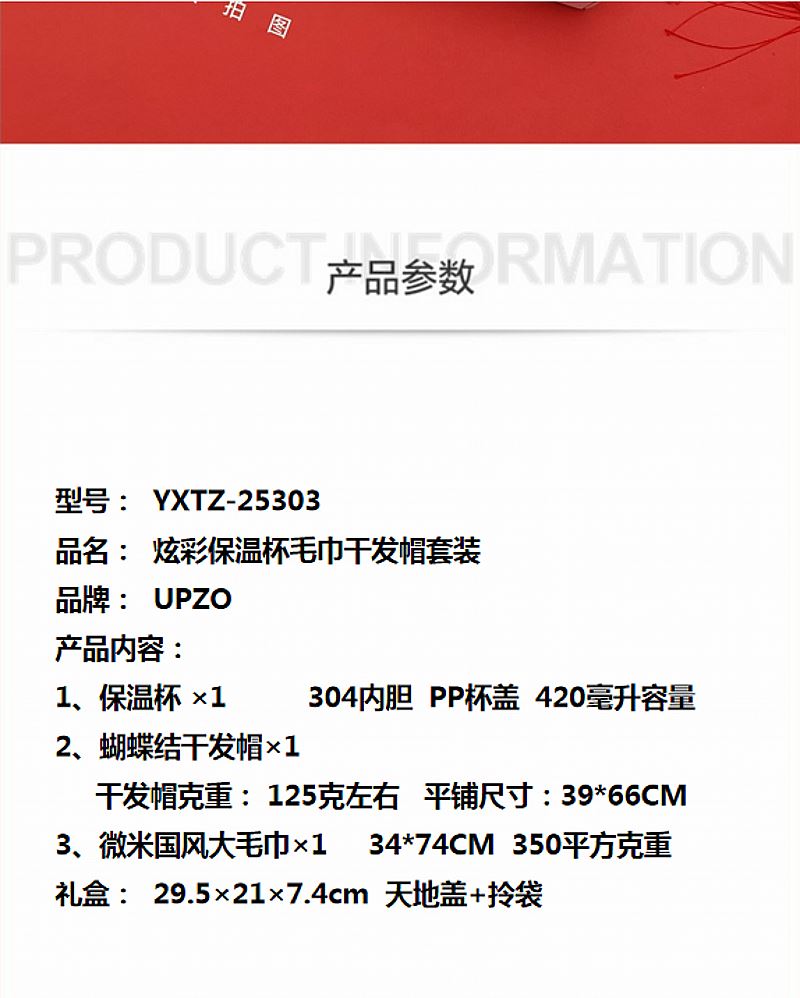UPZO炫彩保溫杯毛巾干發(fā)帽套裝YXTZ-25303