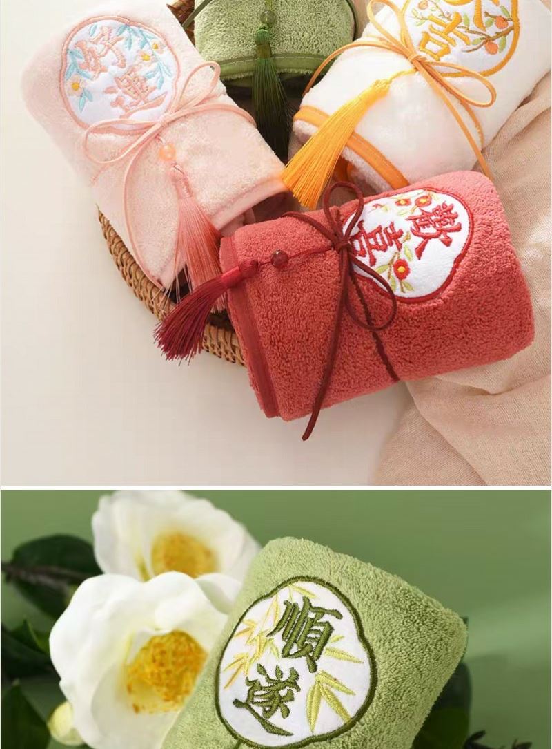 1、微米國(guó)風(fēng)毛巾 精制包邊 厚實(shí)面料 結(jié)合國(guó)風(fēng)刺繡