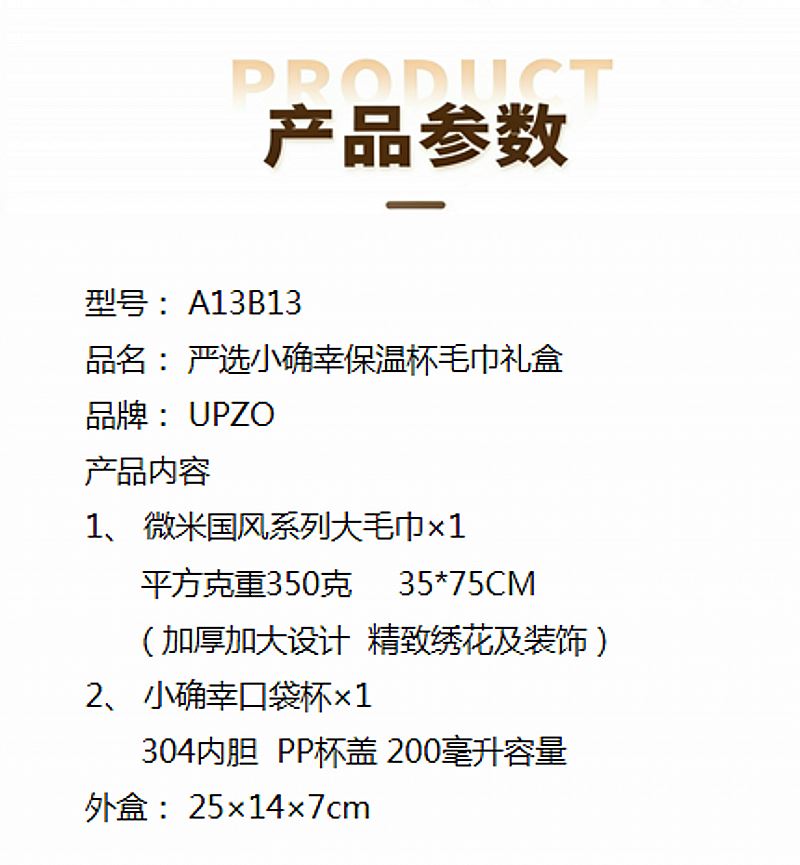 UPZO嚴(yán)選小確幸保溫杯毛巾禮盒A13B13