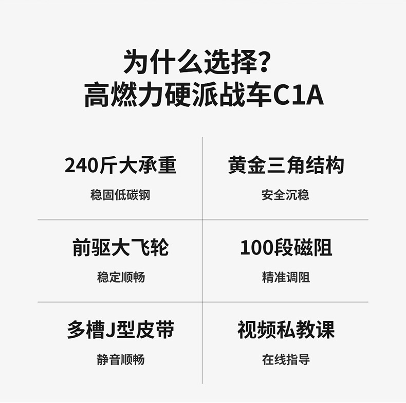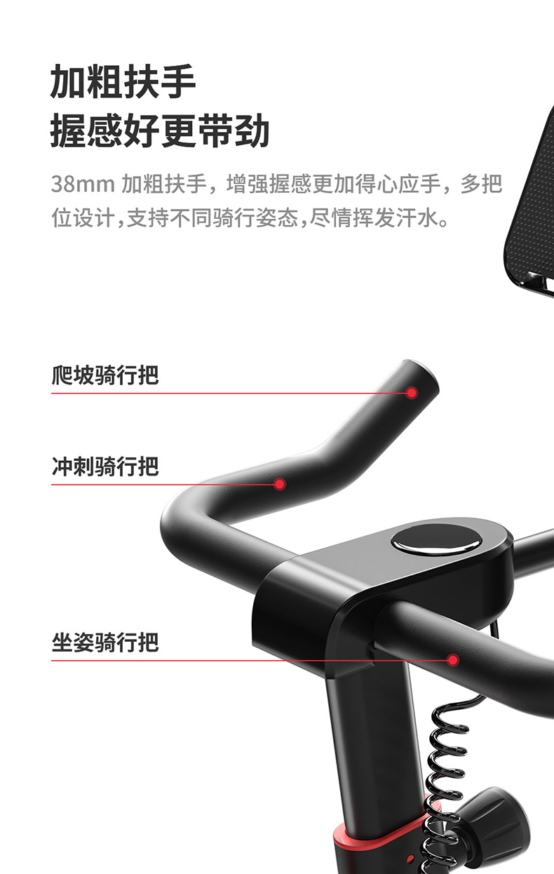 240斤大承重,黃金三角結(jié)構(gòu) 海量直播課程,健身私教帶回家 黃金三角結(jié)構(gòu),安全沉穩(wěn) 100段磁控阻力和多槽皮帶,調(diào)控靜音騎行 創(chuàng)新惰性設(shè)計(jì),防打滑不跑偏,穩(wěn)定運(yùn)行 鋁制大飛輪,燃脂增肌“助推器”