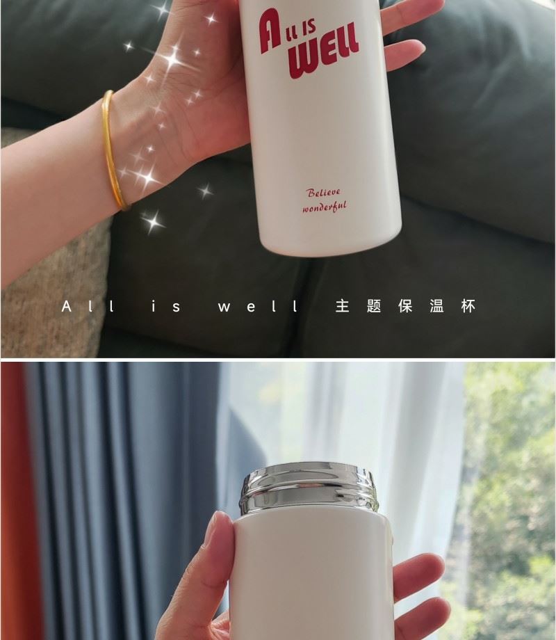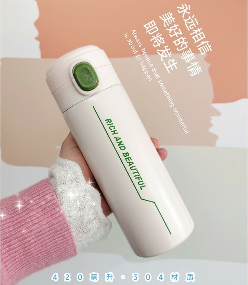 型號: BWB-01 材質: 內膽材質304 杯蓋PP 容量: 420ML 外盒: 21×7×7cm 高顏值 祝福主題融入